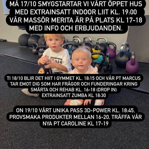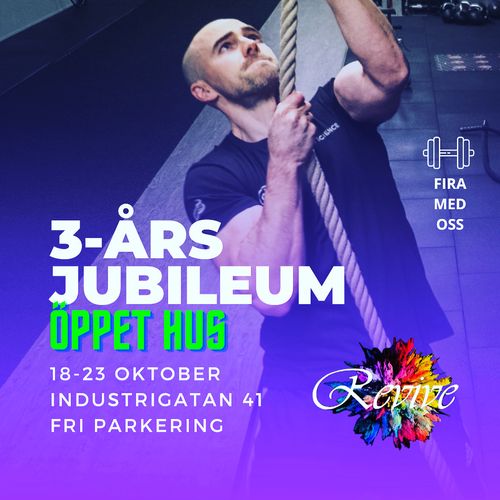 Vi firar 3 år och kommer under v.42 att ha öppet hus. Kontakta oss för en frivecka där du testa på vårt gruppträningsutbud eller provträna kostnadsfritt i gymmet vid ett tillfälle.